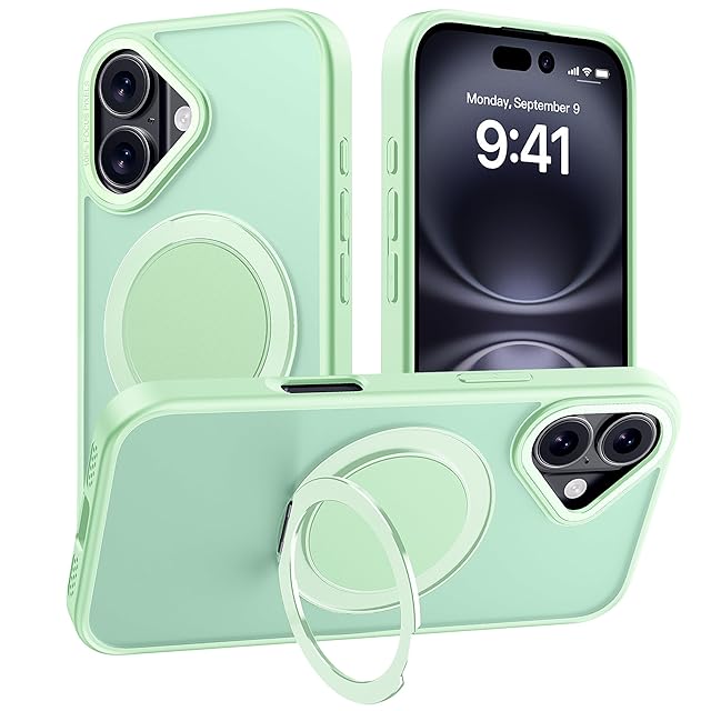 【多機能360度回転スタンド】Mcoifull iPhone 16 ケース マグネット搭載 ワイヤレス充電 耐衝撃 マット感 半透明 指紋防止 アジャスタブルスタンド アイフォン16 ケース ライトグリーン | TREND DESIGN 家電専門店