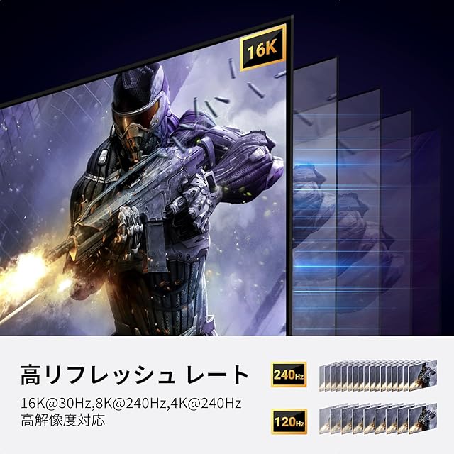 商品名:UGREEN 16K DisplayPort ケーブル DP2.1 VESA認証済み ディスプレイポートケーブル 16K@30Hz 8K@240Hz 4K@240Hz /165Hz/144Hz 超高速40Gbps HDR HDCP 2.2 DSC 1.2a FreeSync&G-Sync DPケーブル 2M