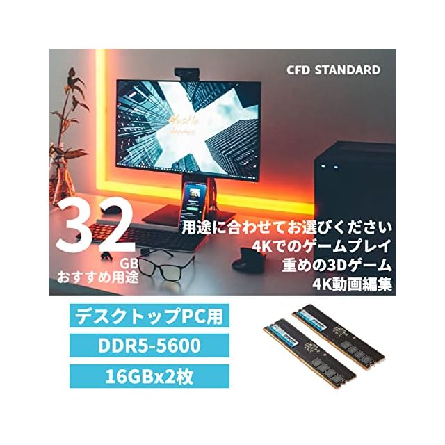 商品名:CFD販売 デスクトップPC用メモリ DDR5-5600 (PC5-44800) 16GB×2枚 (32GB) 相性 288pin シー・エフ・デー販売 CFD Standard W5U5600CS-16G