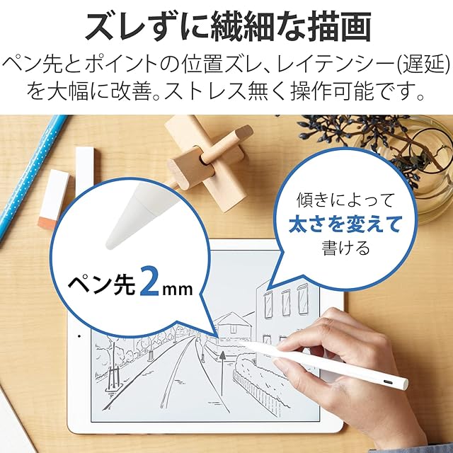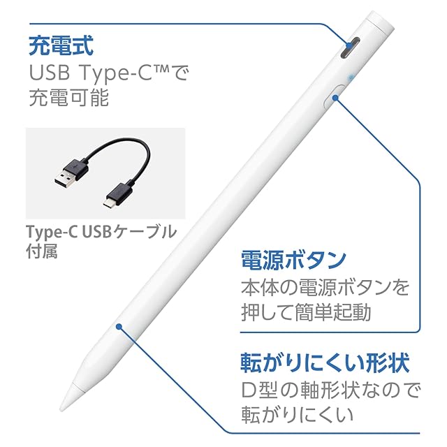 商品名:エレコム タッチペン 【 iPad専用 】 充電式 パームリジェクション対応 傾き検知対応 磁気吸着 USB-C充電 ペン先交換可能 スタイラス ホワイト P-TPACSTAP02WH