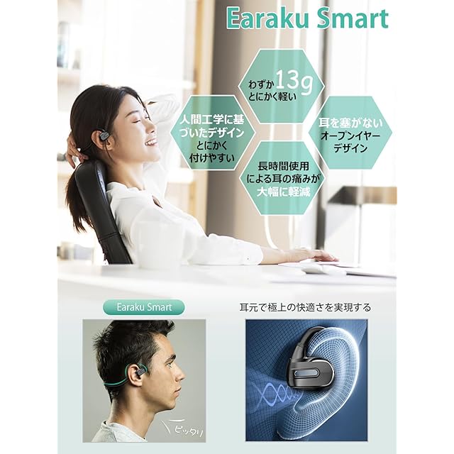 【2025年最新改良版 空気伝導イヤホン & 日本語音声ガイド】2025年の業界最前線を行く空気伝導イヤホンが登場!Earakuの「第四世代 Earaku Smart」は、アジア圏で20万人以上のフィードバックをもとに開発された革新的モデルです。人間工学に基づいたデザインで、長時間の使用でも快適な着け心地を実現しています。