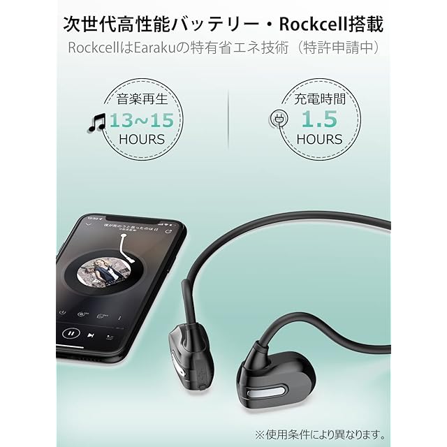 【次世代バッテリーRockcell搭載・15時間連続再生&ENCノイズキャンセリング】 軽量化と再生時間のバランスが取れた次世代「Earaku Smart」イヤホンが登場!最新の省エネ技術Rockcellを搭載し、最大15時間の連続再生が可能な強力なバッテリーを実現。電源切れの不安や充電の手間を大幅に軽減し、長時間の使用も安心です。
