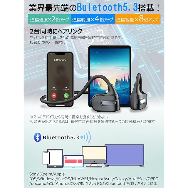 【2台同時接続&優れた互換性】「Earaku Smart」は、ワイヤレス使用時に最大2台のデバイスと同時に接続可能です。接続の切り替えもスムーズで、手間いらず。ペアリングしたデバイスは、電源を再度オンにするだけで自動的に接続されるため、毎日の使用でもストレスフリーで快適です。広範な互換性: Sony Xperia、Apple iOS、Android、Windows、MacOS、HUAWEI、Nexus、Asus、Galaxy、AUガラケー、OPPO、docomo系など、Bluetooth搭載デバイスと幅広く対応しています。安心のサポート: 万が一初期不良があった場合、迅速に交換または返品・返金の対応をいたします。ご不明点やご質問がある場合は、「アカウントサービス」>「注文履歴」>「販売元」>「質問する」からお気軽にご連絡・ご相談ください。