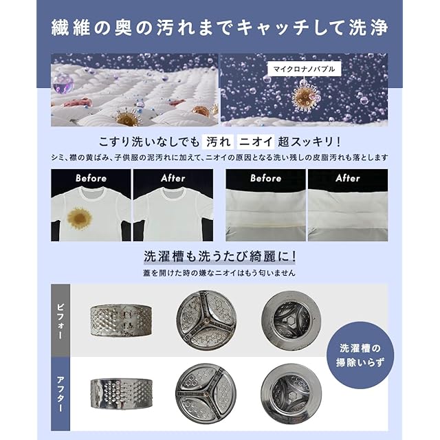 ✅【つけるだけで、洗濯が変わる。】毛穴より小さいナノバブルの優れた洗浄力に加えて、Ag+抗菌で菌の繁殖を防ぎニオイ除去&99%塩素除去で色落ち防止します