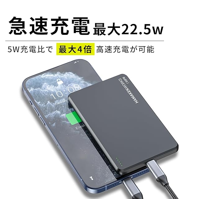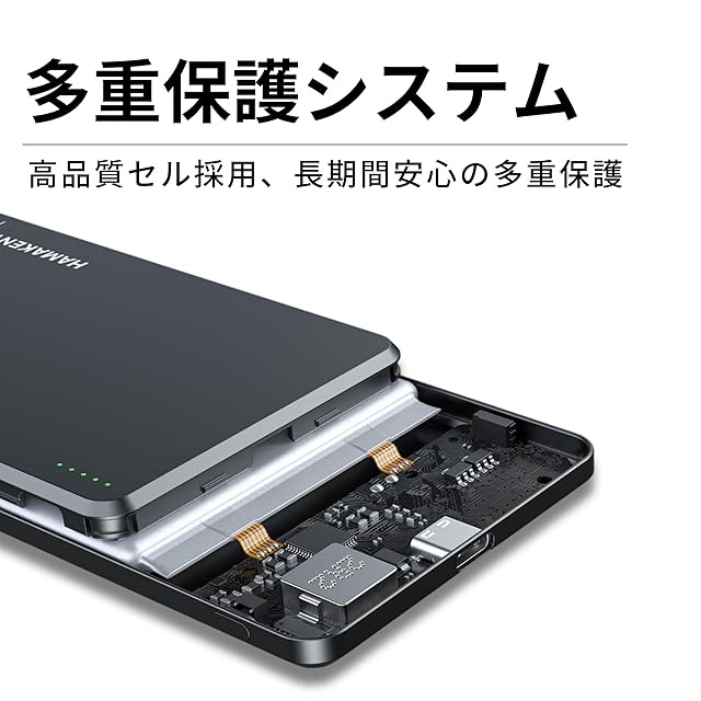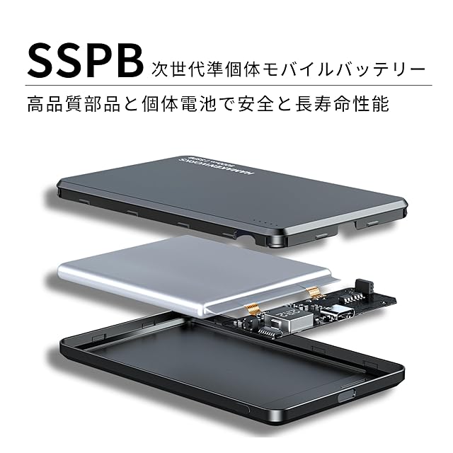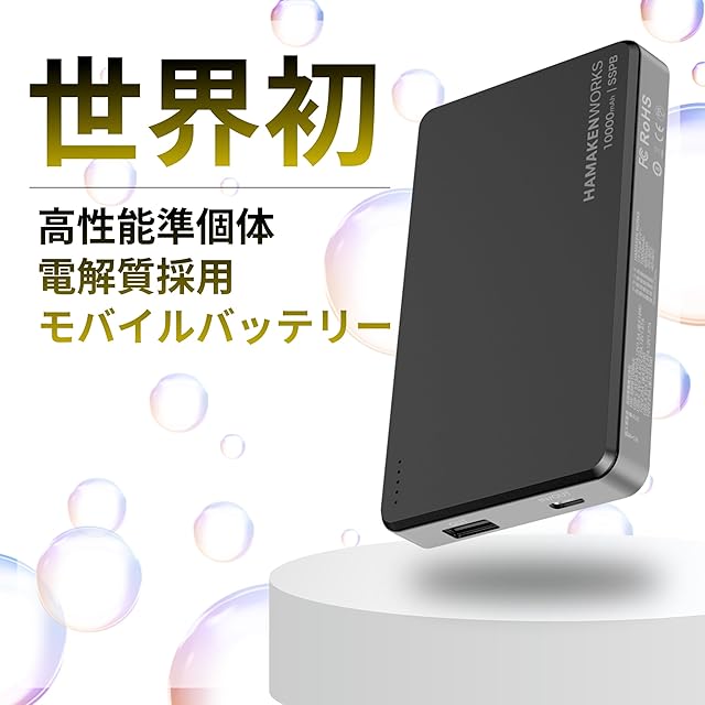 商品名:HAMAKEN WORKS 燃えない モバイルバッテリー 10000mAh 世界初 高性能準固体電解質採用 SSPB(Solid State Power Bank) ジョヴィバッテリー USB-C/USB-A 秋葉原発 長寿命 機内持ち込み可能 高い安全性 HW-SSPB100BKN(ブラック)