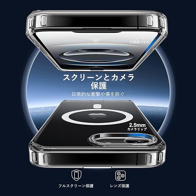 アイホン16eの曲線に従って高低差を設計。液晶画面より1.2mm高く、カメラレンズより1.5mm高く、机などの平面に置いても傷付く心配はない。※本製品は6.1インチしか対応できないですから、ご購入する前サイズを確認ください。