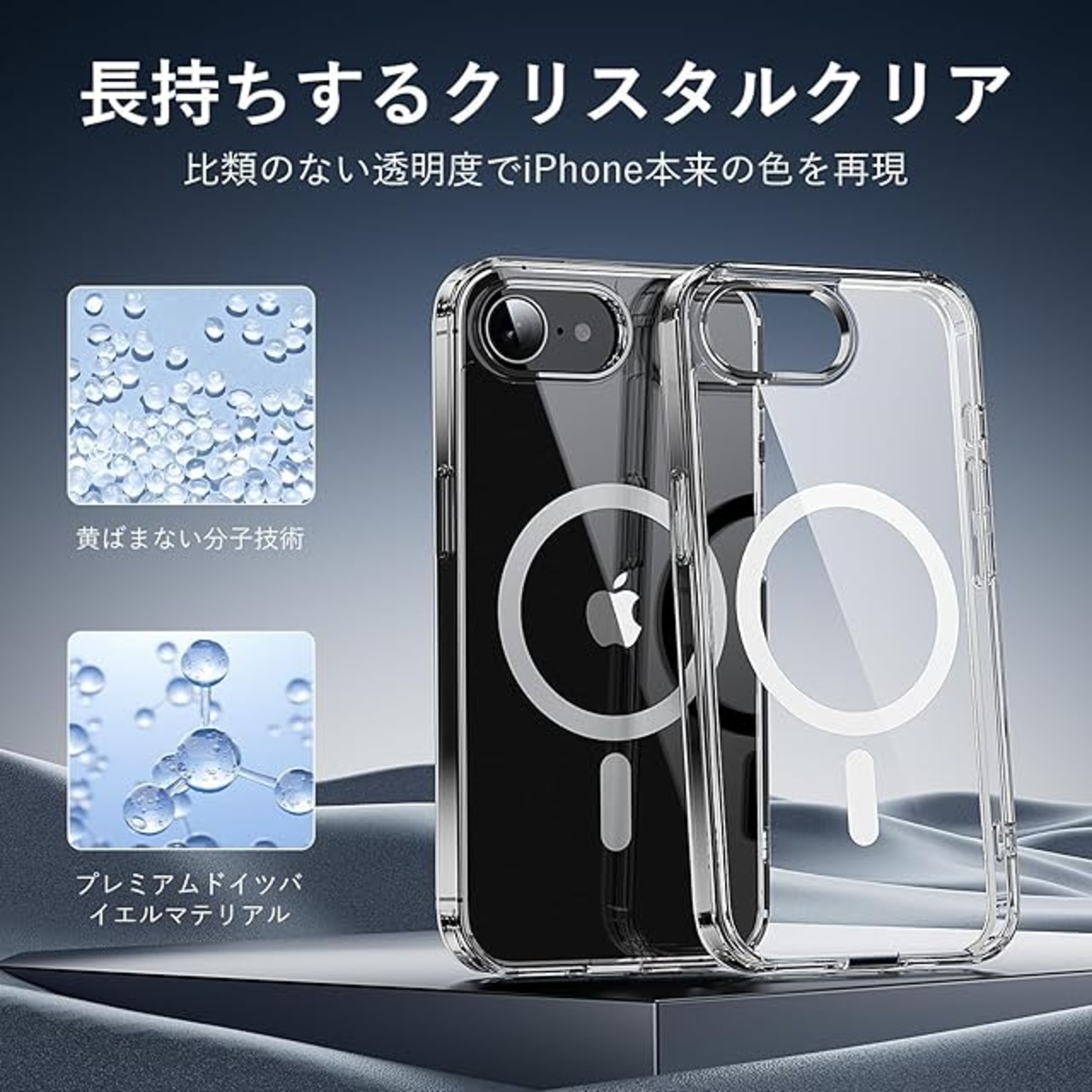 背面に高透明度と指紋軽減を両立した特殊PC素材を採用、iPhone本来の美しさを損なわなず、洗練されたデザインを引き立たせる。
