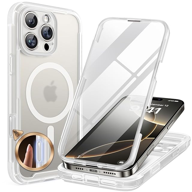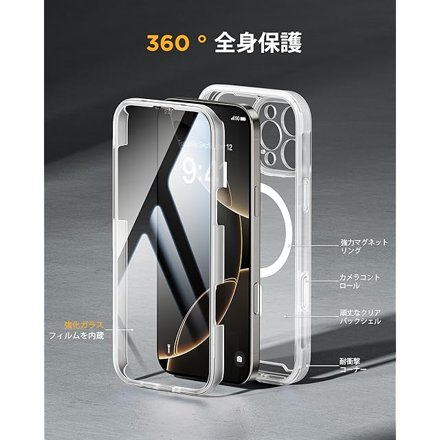 Miracase iPhone16pro ケース MagSafe対応 スマホケース いPhone16pro 用 カバー 9H 強化ガラス 360°保護 全身バンパー保護ケース 6.3インチ フルカバー ワイヤレス充電対応 マグセーフ対応 マグネット搭載 マットクリア | TREND DESIGN 家電専門店