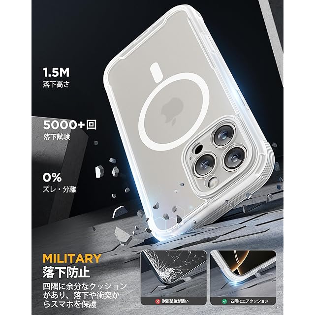 【強力な磁力吸着】2025アップグレード、iPhone16pro 用 Magsafe対応ケース。マグネットを搭載、超強力な吸着力でしっかり吸着します。利便性と実用性をアップさせ、ワイヤレス充電はもちろん、多様なマグネットアクセサリーとの素晴らしい組み合わせも実現できます。