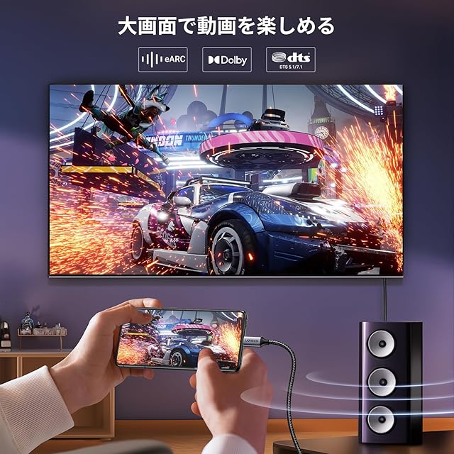 【8K@60Hz高解像度】本製品は最大8K@60Hzの超高解像度に対応で、4K@240Hz/4K@144Hzの高リフレッシュレートにも対応で、4K@60Hz対応ケーブルと比べて滑らかな描写が可能になるため、動きの速いシーンにおいても映像が遅れたり残像が生じるのを抑えられます。2K@240Hzの超高リフレッシュレートもサポートし、eスポーツゲームのような一瞬の差が勝敗を分けるタイトルにおいても安心してゲームをお楽しみ頂けます。ご注意:デバイスの解像度を最大限に活用するには、適切な解像度をサポートするデバイスをご利用ください。