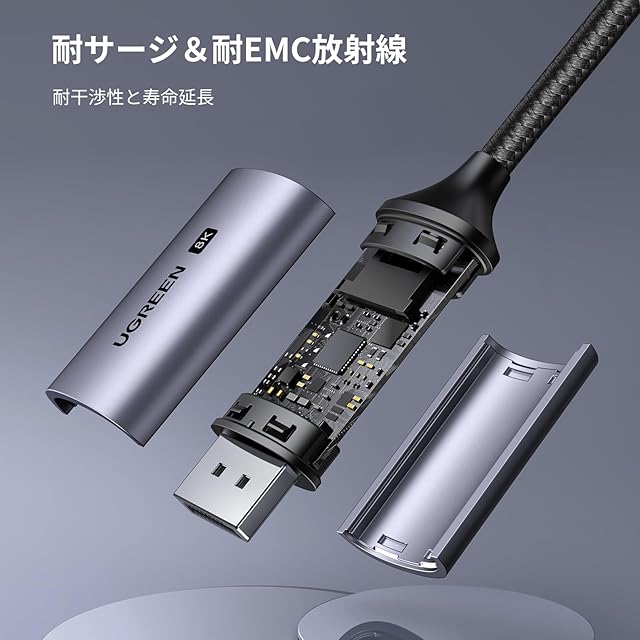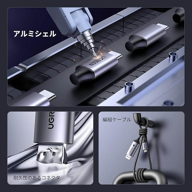 【優れた素材を採用】本製品は軽量でありながら耐久性のあるアルミニウム製ハウジングを採用しています。3重シールドケーブルにより、外部ノイズの干渉を受けにくい。ケーブル部分はナイロンファイバー被覆構造で、10000回以上の折り曲げ試験に合格し、一般的なケーブルより寿命を4倍以上に向上する高耐久ケーブルです。