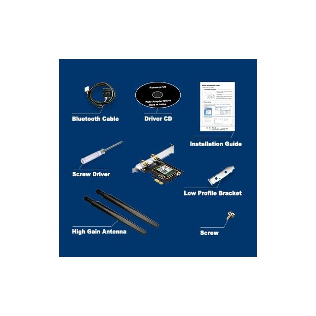 ドライバーとインストール<br>クイックインストールガイドに従ってハードウェアとドライバーをインストールします。ABCのように簡単です。<br> <br>仕様、機能と利点<br>この11ax wifiカードはIntel AX210NGWチップセットを採用し、2x2 WiFiをサポートします6テクノロジー、デュアルバンド 最大:2402Mbps & 574Mbps、ULおよびDL OFDMAおよび1024QAMなどの新機能、160MHzチャンネル、ターゲットウェイクタイム、空間再利用などにより、ピークデータレートが40%近く向上し、最大4倍の容量改善が可能密集または混雑した環境。<br> <br>-Intel AX210NGW Inside <br>-IEEE 802.11 b / g / n / ac / ax <br>-Bluetooth 5.3 <br>-WPA3 <br>-Tri Band 2.4Gbps / 574Mbps<br>-PCI-Express x1。<br>-外部高ゲインアンテナ5dBi <br>-Windows 10 64ビットのみをサポート<br> <br>パッケージ<br> AX210NGW WiFi 1x 6 PCI Express Card <br> 2x外部高ゲインアンテナ<br> 1xロープロファイルブラケット<br> 1x Bluetooth USBケーブル<br> 1xクイックインストールガイド<br> <br>通知<br> 1。 PCI-E x1スロットを使用します。 x16スロットを使用しないでください。<br> 2。 Intel 9560 CNViパーツが含まれているマザーボードでは使用しないでください<br> 3。 Windows 10 64ビットのみをサポートします。<br> 4。 AX210は古いAMD cpusとの互換性が低く、未知の問題がある可能性があります。<br> 5。一部のマザーボードは、同時に動作する2つ以上のワイヤレスネットワークカードをサポートしていないため、システムがクラッシュする可能性があります。そのため、お使いのコンピューターで1枚のワイヤレスネットワークカードのみを使用してください。