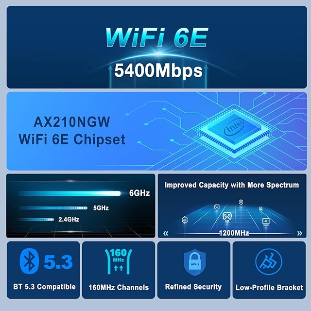 商品名:OKN WiFi 6E PCIe 無線LANカード AX5400 内蔵Intel AX210NGW WiFi 6モジュール 802.11AX PCI-Express 無線LANアダプタ Bluetooth 5.3対応, Windows10/11 64-bit対応