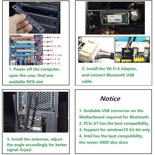 ➤【互換】Windows 10/11 64ビットと互換性があります。Intelと新しいAMD対応。LenovoとDellのデスクトップは、ネットワークカードの互換性にホワイトリストの制限があるかどうかに注意を払う必要があり、製造元に連絡して、製造元の指導の下でBIOS設定を更新することをお勧めします。PCIEスロットx1、x4、x8、x16の全てをサポートし、PCIE x1スロットは最適な互換性を持つ。すべてのwifiルータに対応、ATXとミニATX対応のpcケースです。(古いマザーボードを購入する前にサポート状況を確認してください)。