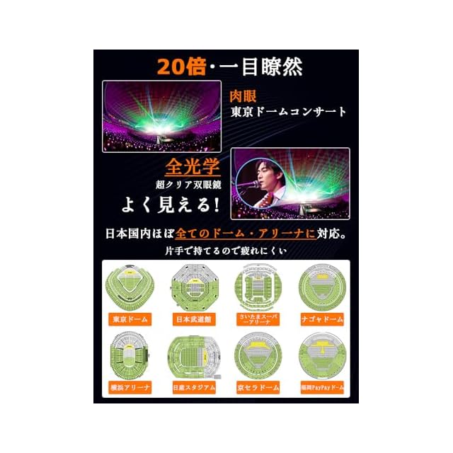 商品名:【業界初·全光学】 双眼鏡 ライブ用 20倍 オペラグラス 観劇 スポーツ観戦用 双眼鏡 コンサート 防振 小型 防水 倍率調整可能 ライブ/オペラ/観劇/スポーツ観戦/旅行/アウトドア/野鳥観察 ネックストラップ 収納ケース付き 日本語説明書
