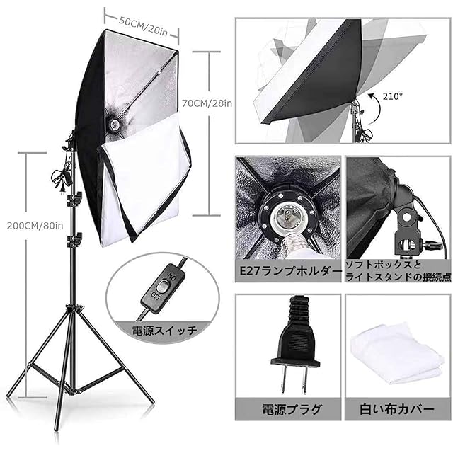 【2024年改良版高品質ソフトボックス*2】ソフトボックスは、専門性の高い反射材によりマルチレイヤ加工処理されています。内面の石模様反射材で、優れた耐熱性と散光性があり、被写体をしっかり引き立たせて撮影できます。ソフトボックスキットは、50 x 70 cmの大きな表面、光を均一に拡散する上、撮影効果を向上させる照明を提供します。更に、写真撮影ソフトボックスは影を取り除いて柔らかい光を反射し、より良い撮影効果を実現できます。素人でも簡単にのような写真の撮影ができます