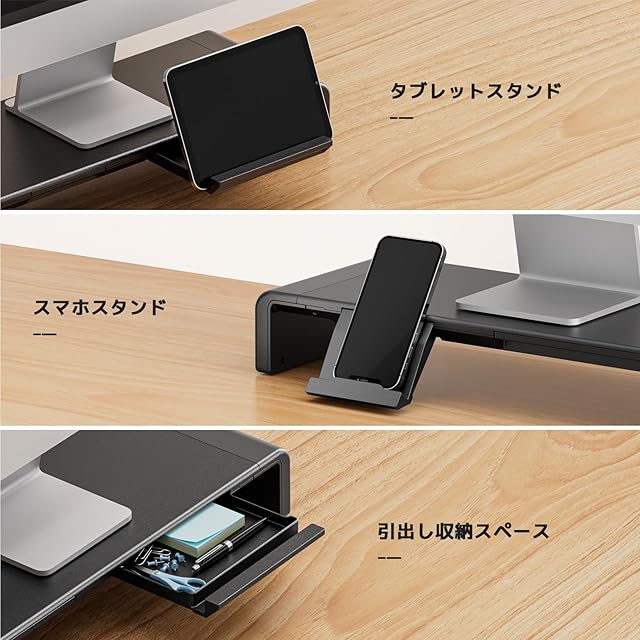 Klearlook モニター台 机上台 最大耐荷重50kg 折りたたみ式 三段階の幅調整可能 ノートパソコンスタンド モニタースタンド デスクスタンド キーボード収納 引き出し スマホ・タブレットトレー <br>モニターだい 台 パソコンだい 台 卓上 モニター台 デスク 台<br>卓上台 モニターラック 50cm スタンど モニター置き台 台座 テレビ台 モニターテーブル パソコンだい パソコンスタンド ノートパソコン パソコンラック monitor stand 引き出し付き pcラック ディスプレイスタンド パソコンモニタースタンド 黒 pc台 モニター置く台 ディスプレイ モニター代 ディスプレイ台 モニターだい テーブル ディスプレイ用台 収納 pcモニタースタンド ラック 奥行き20cm pc 机 リヒトラブ モニター用 ディスフレイ モニター台座 ノートパソコン台