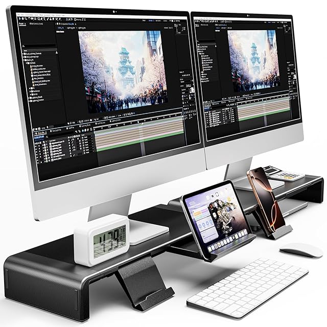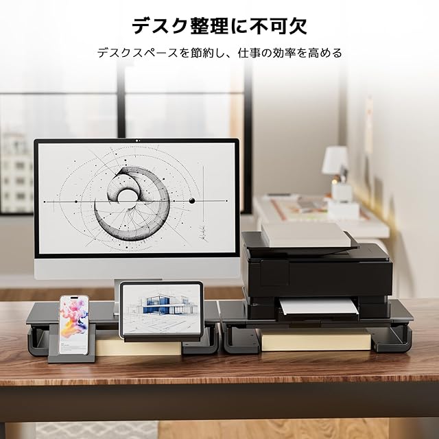 Klearlook モニター台 机上台 耐荷重25kg 折りたたみ式 三段階の幅調整可能 ノートパソコンスタンド モニタースタンド デスクスタンド キーボード収納 引き出し スマホ・タブレットトレー (2個入り ブラック) | TREND DESIGN 家電専門店