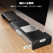 三段階の幅調整可能:モニター台をご自身の好みとデスクの広さに合わせて、横幅を三段階(420mm、470mm、520mm)に調節できます。さまざまなモニターをサポートできます。