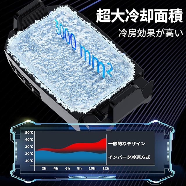 【TECペルチェ素子&急速冷却】 スマホ 冷却ファン最新TEC半導体冷凍技術を採用して、大幅に冷却量を高めて、速いスピードで冷凍して、同時に携帯電話のラジエータは超大面積の導冷板を持って、はるかに円形導冷板の約200mm²の面積を超えます。20sでスマホの温度を約15°Cまで下げることができます。