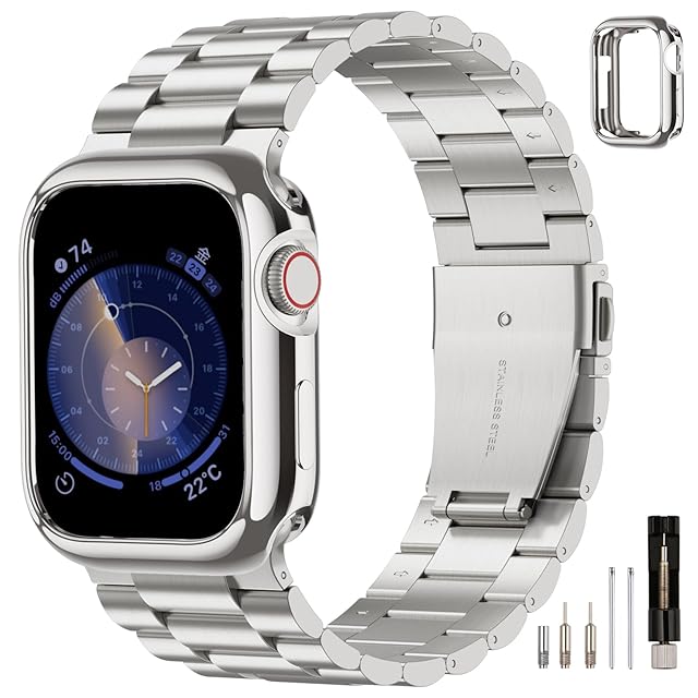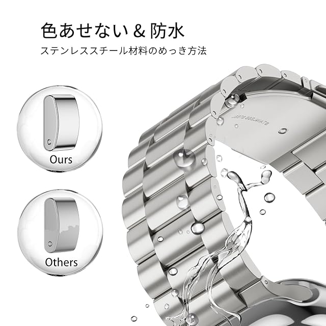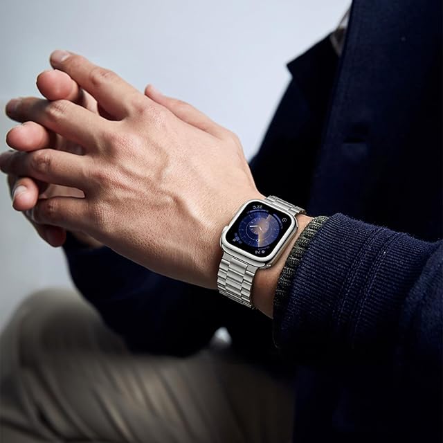 <p><b>Apple Watch用ステンレスバンドのビジネスシーンでの使用体験</p> <p>高級感と耐久性:ステンレス製のApple Watchバンドは、その上品な光沢と高品質な素材が特徴です。316Lステンレスを使用しているため、耐久性が高く、長期間使用しても変色や劣化しにくい。ビジネスシーンでは、この高級感がフォーマルな装いにも調和し、あなたのスタイルを引き立てます。</p> <p>機能性と快適性:ステンレスバンドは、精密な加工技術により、手首に自然にフィットし、快適な装着感を提供します。また、取り外しツールが付属しているため、バンドの長さを簡単に調整でき、手首のサイズに合わせて最適な着け心地を実現できます。長時間の使用でも疲れにくい設計です。</p> <p></p> <p>デザインの汎用性:ステンレスバンドは、シンプルながらも品格のあるデザインが特徴で、ビジネスからカジュアルまで幅広いシーンで活用できます。ローズゴールドやシルバーなど、色のバリエーションも豊富で、どんなファッションにも調和しやすいです。</p> <p></p> <p>ビジネスマナーに適した:ビジネスシーンでは、腕時計はマナーの一部とされています。Apple Watchは「腕時計」としてビジネスシーンで着けても問題ありません。ステンレスバンドは、その高級感とフォーマルなデザインが、ビジネスマナーに適した選択肢です。</p> <p></p> <p>維持と手入れが簡単:ステンレスバンドは、表面が滑らかで汚れが付きにくく、手入れが簡単です。ビジネスシーンで清潔感を保つことが重要であり、ステンレスバンドはその点で優れています。</p> <p></p> <p>ステンレスバンドは、ビジネスシーンで使用するApple Watchの最適な選択肢です。高級感あふれるデザインと耐久性、そして快適な装着感で、あなたのビジネススタイルをアップグレードします。</p> <p>
