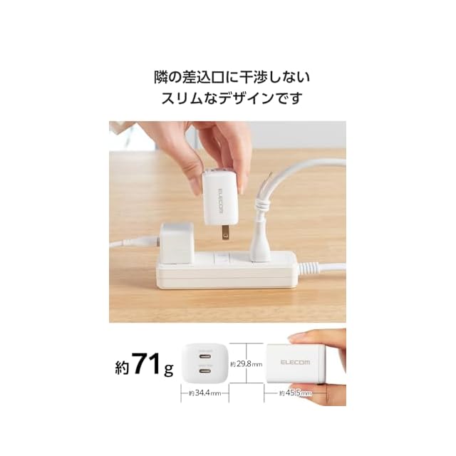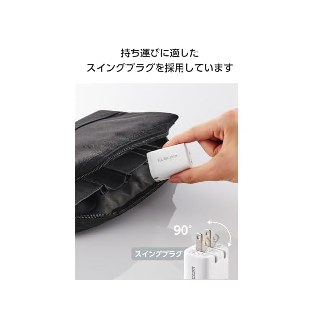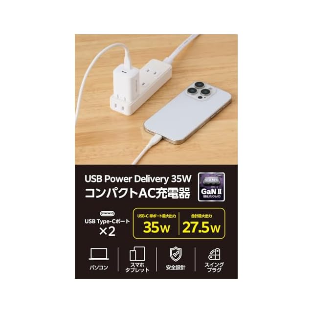 商品名:エレコム 充電器 35W Type-C 2ポート USB PD対応 スイング式プラグ PPS対応 ホワイト 【iPhone 16 15 等対応】 EC-AC9335WH