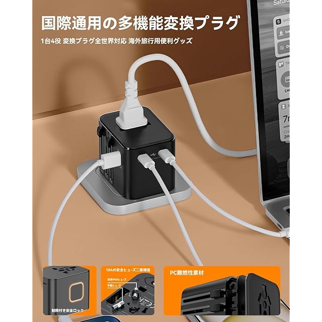 【高い安全性&コンパクト】このコンセント変換プラグは耐熱や変形しない素材を採用し、コンパクトなのサイズ で持ち運びに便利です。さらに、過熱、過電流、過充電、短絡防止、過電力保護、過電圧保護、過放電保護などの7重のセキュリティ保護が付いています。また10A予備ヒューズも1ついて、万が一の場合はすぐに役たちます。海外旅行、出張、研修などに適用します。