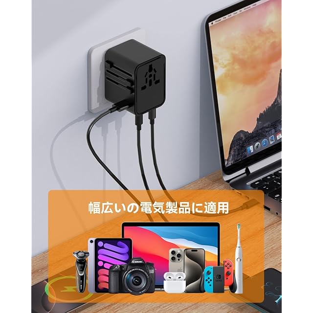商品名:変換プラグ 海外2025最新 全世界対応 海外旅行用電源コンセ ントマルチ2つUSB-Cと1つUSB-Aポート付き C/O/BF/Aタイプ付きアダプター ヨーロッパ/韓国/オーストラリア/イギリス/アメリカ/中国などの国に対応 (ブラック)