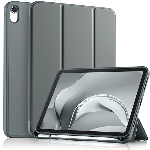 Maledan 対応iPad 11世代 ケース 2025モデル - 11/10.9インチ 三つ折りスタンド ペンシル収納ホルダー付き 軽薄 軽量 オートスリープ機能対応 耐衝撃 対応iPad 10世代 ケース ダークグレー