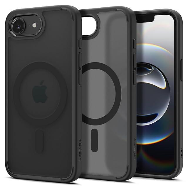Spigen 【創業18年の技術力】 iPhone 16e ケース MagSafeアクセサリー対応 マグネット搭載 半透明 ストラップホール 指紋防止 米軍MIL規格 ウルトラ・ハイブリッド・マグフィット ACS09144 (フロスト・ブラック) | TREND DESIGN 家電専門店