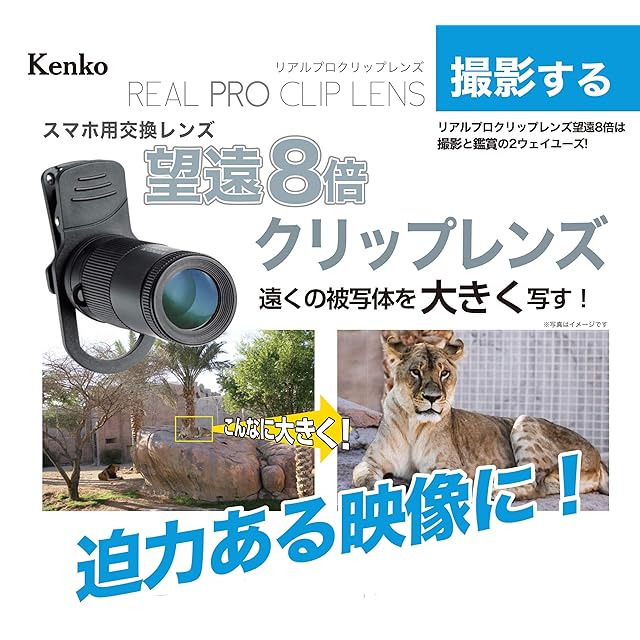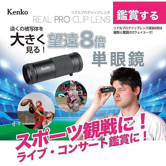 商品名:Kenko スマホ用交換レンズ リアルプロクリップレンズ テレ8× 望遠8倍 単焦点 単眼鏡兼用モデル 8倍 20口径 ダブルレンズスマホ対応クリップ KRP-8t ブラック
