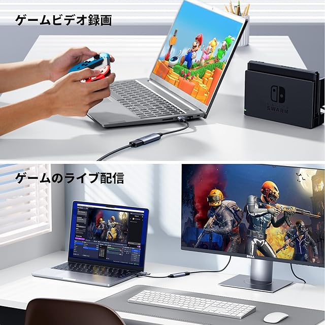 【ライブ配信&ゲーム実況に最適】本HDMIキャプチャーは、OBS StudioやXSplitをはじめとするサードパーティ製のライブアプリケーションで使用可能で、そのため、人気のソフトでライブ配信をお楽しみいただけます。「Zoom」や「Teams」などのWeb会議アプリでも使用可能で、ウェビナー用のカメラ映像として活用できます。また、HDMI出力のゲーム機とパソコンの間に本商品をつなぐことで、ゲームのプレイ映像を公開できます。
