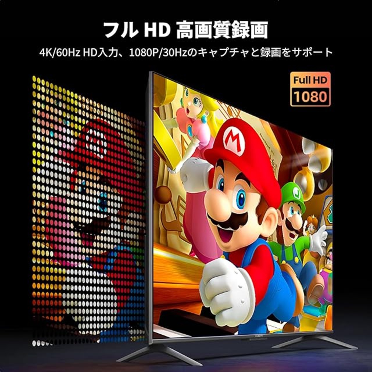 【HDMIビデオキャプチャーボード】本製品はHDMI出力の映像をパソコンで簡単手軽に保存できるHDMIキャプチャーです。パソコンとスマホ、ゲーム機、ビデオカメラなどの間に接続するだけで、誰でも手軽に高画質の動画や静止画を記録できるようになります。パソコンに出力できる最大解像度はFullHD(1920×1080)/30Hz、カメラ・ゲーム機等から入力できる最大解像度は4K(3840×2160)/60Hzまでに対応しています。