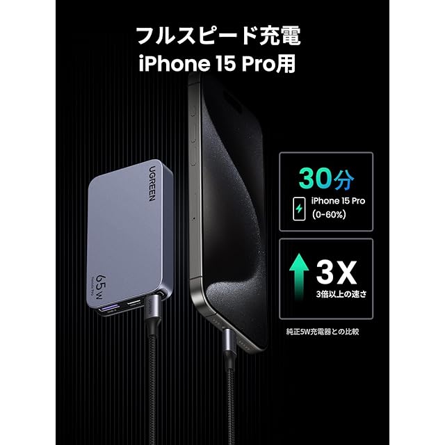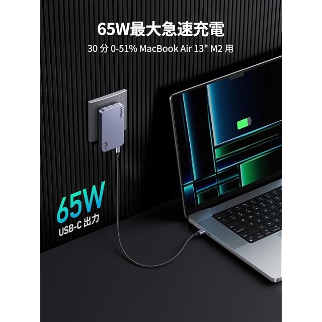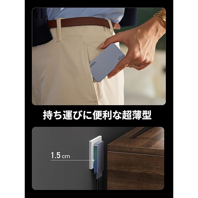 商品名:UGREEN Nexode Pro 充電器 65W 3ポート(2*USB-C+1*USB-A)【当社比最薄65W 急速充電器 15mm】PSE認証済 PD 新生代GaNInfinity™チップ+UGREEN独自Airpyra技術 type-c 折り畳み式 PD3.0/QC4+/PPS/SCP規格対応 MacBook/ノートPC/iPad/iPhone/スマホ各種対応