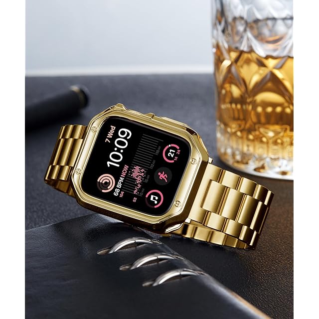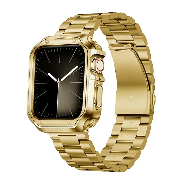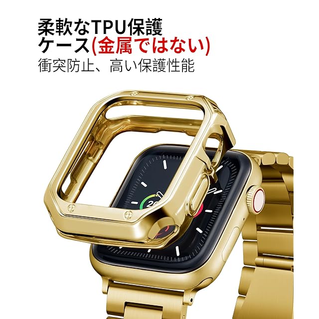 コンパチブル Apple Watch バンド 46mm 45mm 44mm 42mm 41mm 40mm 38mm コンパチブル アップルウォッチバンド ステンレス ゴールド ポリッシュTPUケース コンパチブルiWatch ベルト Series 10/9/8/7/SE2/SE/6/5/4/3/2/1(42mm) | TREND DESIGN 家電専門店