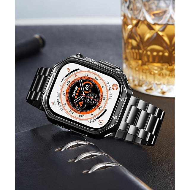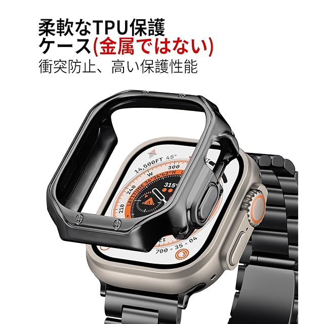 コンパチブル Apple Watch バンド 49mm コンパチブル アップルウォッチバンド ステンレス ブラック ポリッシュTPUケース コンパチブルiWatch ベルト Ultra2/Ultra(49mm) | TREND DESIGN 家電専門店