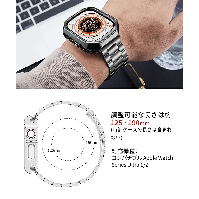 着用に便利:コンパチブルアップルウォッチバンドの解放と固定に便利な折りたたみ式時計バックルを装備。バンドの長さを調整するための金属製時計バンドのリムーバブルリンク。49mmサイズのストラップの調節可能な長さは約125-190mmです(時計ケースの長さは含まれない)
