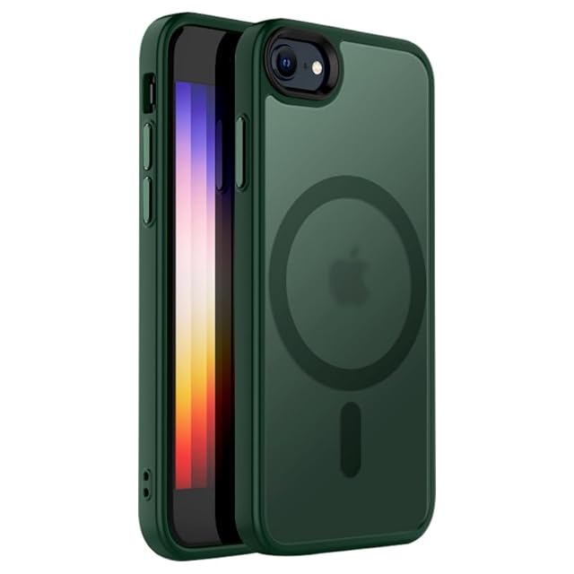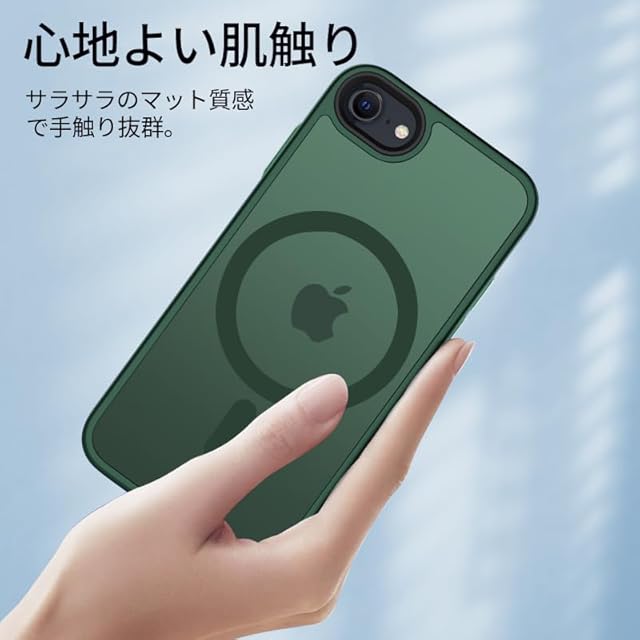 【米軍規格・Magsafe対応】Gtsoho iPhone SE3 用 ケース 半透明 マグネット搭載 ワイヤレス充電 耐衝撃 耐久性 全面保護 黄ばみなし ストラップホール付き イフォンiPhone SE2・8・7 用 カバー 4.7 用 カバー マグセーフ対応ミッドナイトグリーン