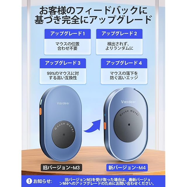 商品名:VAYDEER マウスジグラー 検出不能 マウスムーバー 自動 動かす 物理的 Mouse Jiggler Mover、ON/OFFスイッチ付き ドライバーフリー 、PCラップトップをアクティブに維持/在宅勤務をする/生産性向上用 家族/友人/同僚/誕生日/クリスマスプレゼント(エレガントブルー)