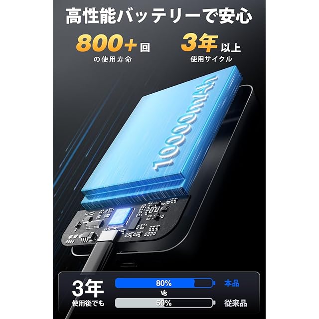 【PSE認証·多重保護システム装置】当社のモバイルバッテリーは高品質の内蔵バッテリーコアを採用し、過充電保護、過熱保護、過放電保護、過電圧保護、ショート保護など、複数の安全保護装置を備えており、モバイルバッテリーの安全性を確保しています。さらに、当社の製品はPSEの安全認証を取得しており、品質が信頼できます。パッケージには、マグセーフ モバイルバッテリー*1、Type-Cケーブル*1、日本語の説明書*1 が含まれています。製品をご使用中にご質問がある場合は、いつでもお問い合わせください。