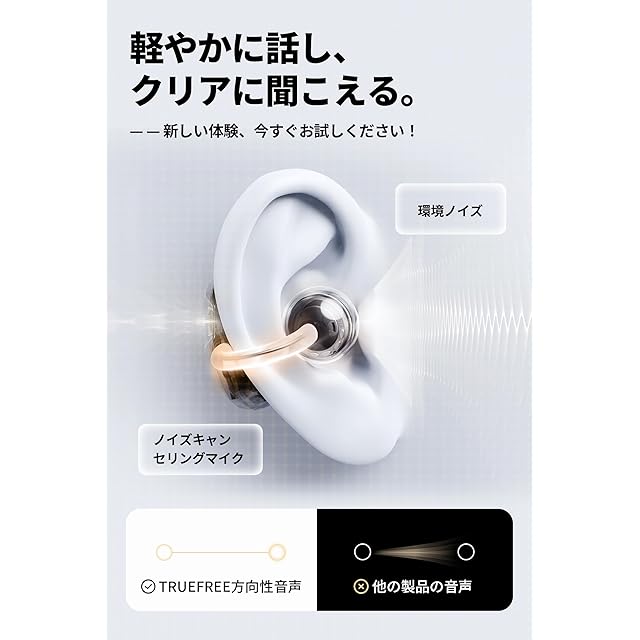 記憶合金を使用してC型「ブリッジ」を形成し、耳にしっかりとフィットし、優れた触感を提供します。12mmのデュアルマグネットダイナミックドライバーとダイナミックEQアルゴリズムにより、強力な没入感を実現。周囲の音を感じながら、音楽に浸りつつも危険を回避することができます。デュアルマイク搭載の環境ノイズキャンセリング機能により、外部の騒音を気にすることなく、クリアな通話が可能です。連続再生時間は最大28時間で、日常的な通勤にも適しています。防水性能を備え、運動中の水しぶきや汗に耐えることができます。TRUEFREE Clip C10は、快適に音楽を楽しむための理想的な選択肢です。この新しいタイプのイヤホンで、音楽の世界をお楽しみください。
