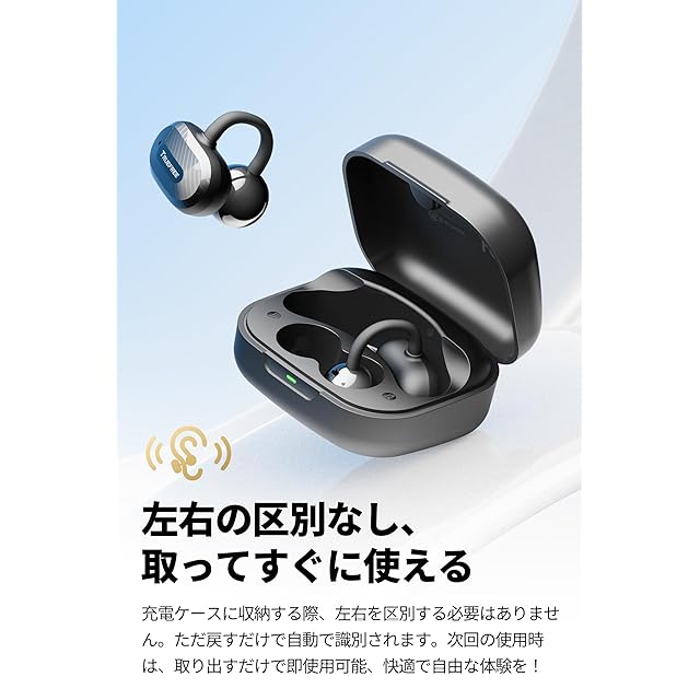 【自動左右切替&タッチカスタマイズ】磁気検知式充電ケースが自動で左右判別。専用アプリでイコライザー設定を自由にカスタマイズ可能。耳かけ部分のTPU樹脂が肌触りなめらかで、敏感肌の方にも最適。
