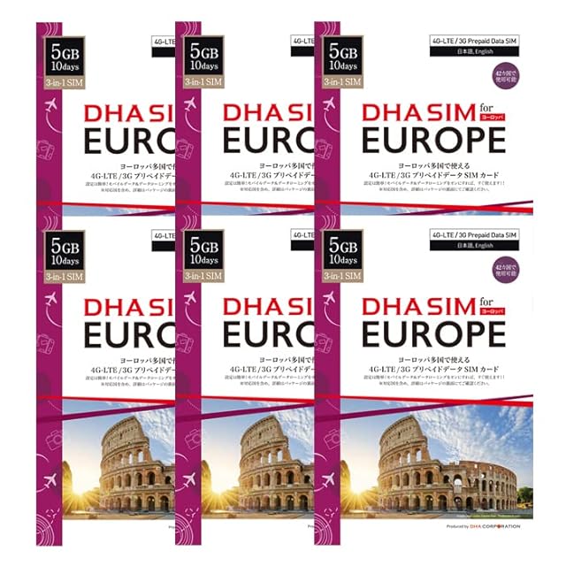 商品名:ヨーロッパSIM 30GB 60日間 (5GB10日間×6枚入) 42か国周遊 プリペイド simカード 4GLTE/3G回線 3in1 データ通信専用 simフリー端末のみ対応 | イギリス フランス イタリア オーストリア オランダ ギリシャ スペイン ドイツ