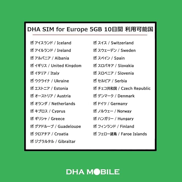 【対応国一覧】アイスランド、アイルランド、アルバニア、イギリス、イタリア、ウクライナ、エストニア、オーストリア、オランダ、キプロス、ギリシャ、グアドループ、クロアチア、ジブラルタル、スイス、スウェーデン、スペイン、スロバキア、スロベニア、セルビア、チェコ共和国、デンマーク、ドイツ、ノルウェー、ハンガリー、フィンランド、フェロー諸島、フランス、フランス領ギアナ、ブルガリア、ベルギー、ポーランド、ボスニア・ヘルツェゴビナ、ポルトガル、マルタ、マルティニーク、モンテネグロ、ラトビア、リトアニア、ルーマニア、ルクセンブルク、ロシア
