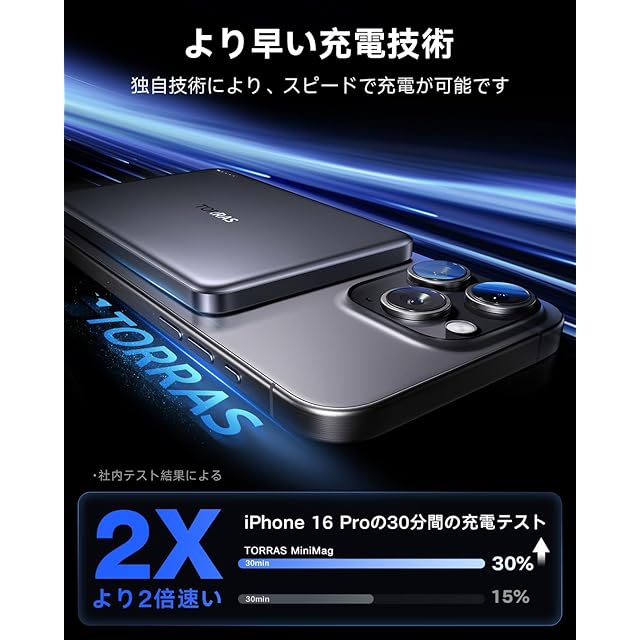 商品名:【2025品質強化】TORRAS MiniMag モバイル バッテリー MagSafe対応 10000mAh 15W急速充電 ワイヤレス充電器 マグセーフ充電器 マグネット式 PD22.5W 大容量 2台同時充電 PSE認証済み 機内持ち込み可 iPhone12~16 対応