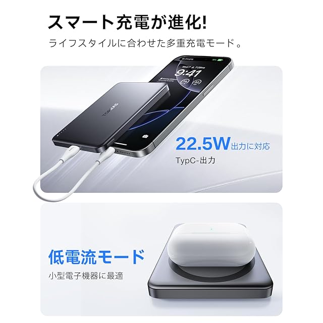 【2025品質強化】TORRAS MiniMag モバイル バッテリー MagSafe対応 10000mAh 15W急速充電 ワイヤレス充電器 マグセーフ充電器 マグネット式 PD22.5W 大容量 2台同時充電 PSE認証済み 機内持ち込み可 iPhone12~16 対応 | TREND DESIGN 家電専門店