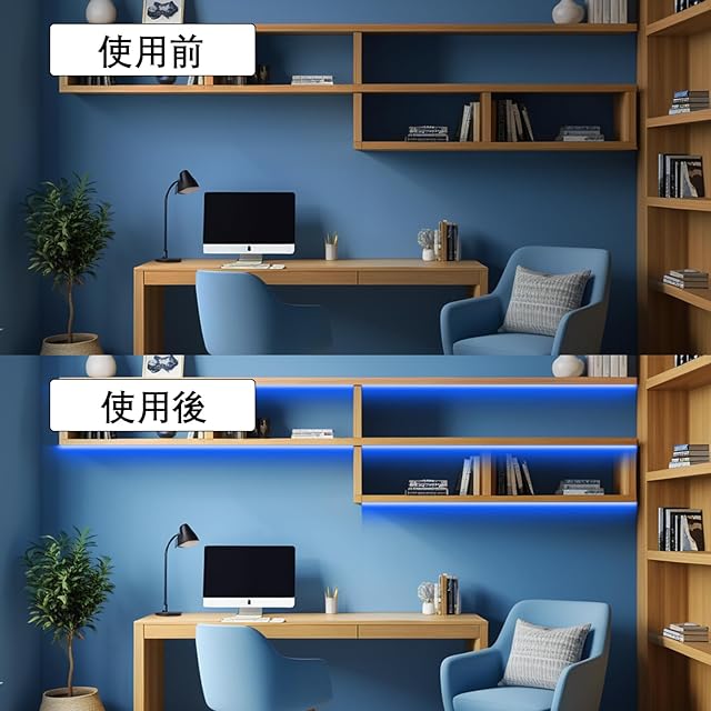 「高輝度&調光可能」チップの搭載数が通常のledテープライトより倍以上(1m/320個)の為、はるかの輝度を提供します。輝度も好みに応じて調整することが出来ます。(最大10段階で調整でき)