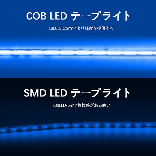 ShineBurky ledテープライト COB 高密度 高輝度 320LEDs/m 10段階調光 入電電圧12v 5m カット可能 両面テープ設置 テープライト cob ブルー | TREND DESIGN 家電専門店