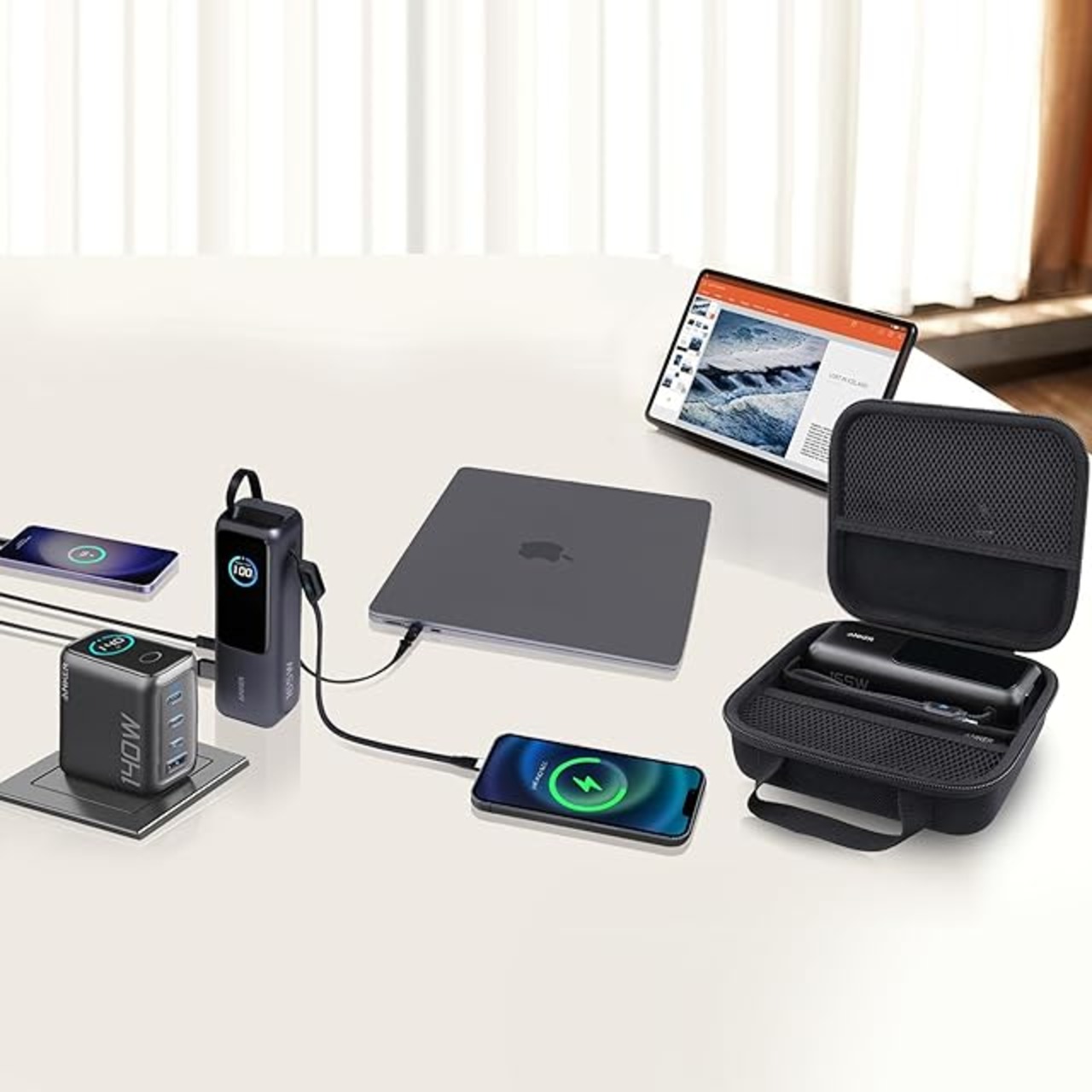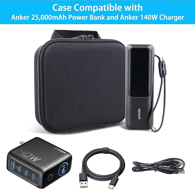【ぴったりフィット】ケースは、Anker Power Bank(25000mAh, 165W)モバイルバッテリーと Anker Charger (140W) のために特別設計されており、Anker Power Bank(25000mAh, 165W)とアクセサリなどをまとめて収納できます。