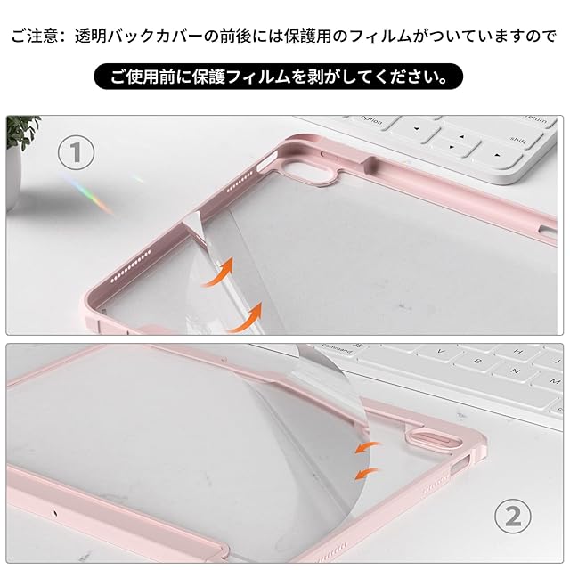 クリアバックカバー: 柔軟なTPUバンパーと透明なハードPCバックシェルで作られており、デバイスの本来の美しさを見せます。iPadを傷や衝撃からしっかりと保護しながら、取り付けや取り外しが簡単です。 (注意:透明バックカバーの前後には保護用のフィルムがついていますので、ご使用前に保護フィルムを剥がしてください。)